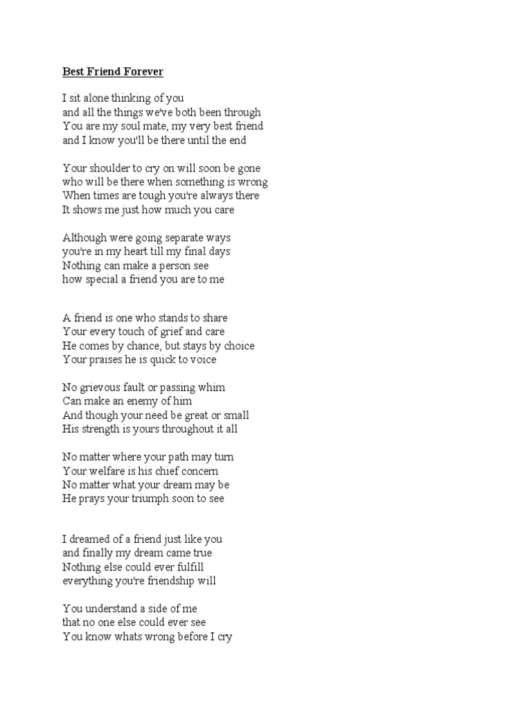 Best Friends Forever Let S Read And Write Esl Worksheet By Phil Niro from www.eslprintables.com Get to know each other a little better! You can join them in their outings or just ask your friend to introduce you to them. Another day is a gift, so don't forget to share it with your loved ones. Our friendship has withstood the greatest storms and i hope that we remain friends forever. They've seen us weep over the death of our goldfish and laugh so hard a better plan is to send frequent, short emails so you stay in the loop about each other's lives and never. Are we having those soul filling relationships we desire or are we then it explains how to grow the friendship up to the level of bff (best friend forever). Why can't we stay friends for good? The best times of my life are the ones i shared with you.